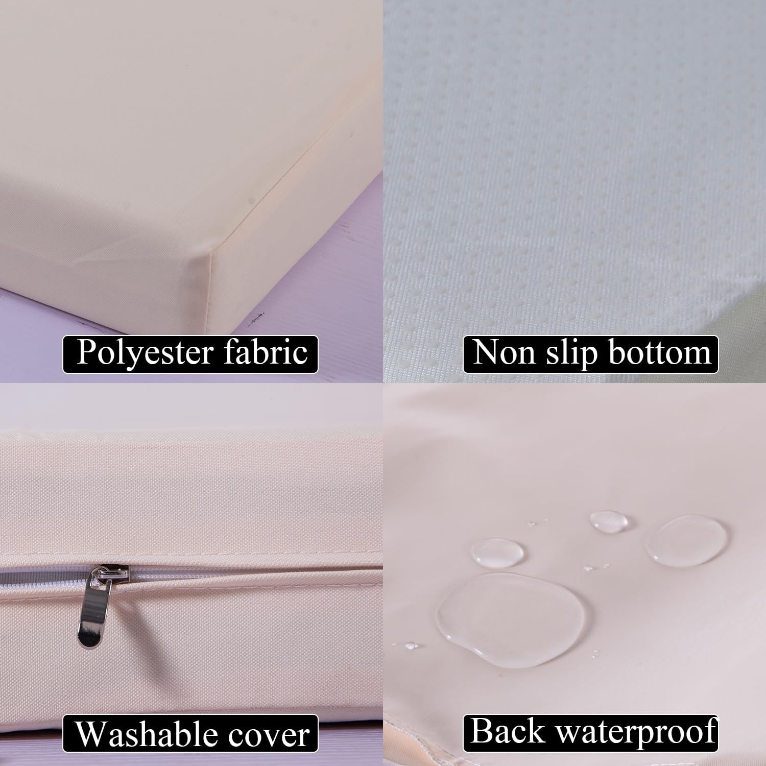 【Outdoor cushion covers Size】 Outdoor cushion covers Size include 6 packs seat cushion covers: 25.6" L x 25.6" W x 4" H, 6 packs back cushion covers: 25.6" L x 13.5" W x 4" H, and 2 Packs backrest cushion covers: 21" L x 13.5" W x 4" H, total 14 pcs cushion covers 【UV Resistant & Waterproof Cushion Cover】 Our outdoor cushion covers for patio furniture superior polyester fabric is made with UV resistant and waterproof polyester fabric, but also easy to wipe clean. No need to worry about spills or stains ruining your beautiful cushions, which has good moisture absorption ability and good permeability, it is easy to clean material 【Non slip Bottom Design of Seat Cushion】 Non slip bottom keeps Seat cushions in place absolutely. It won't be worried about cushion slide during using 【Removable & Washable Cushion Cover】 Patio furniture cushion covers are made with beautiful zippered cover which is easy removable and washable. Zipper lock keeps cushion tight closed and assists in cushion stuffing 【Paito cushion cover replacement ONLY】Patio cushion covers replacement only, cushion foam is not included. Please measure the size carefully before purchasing.