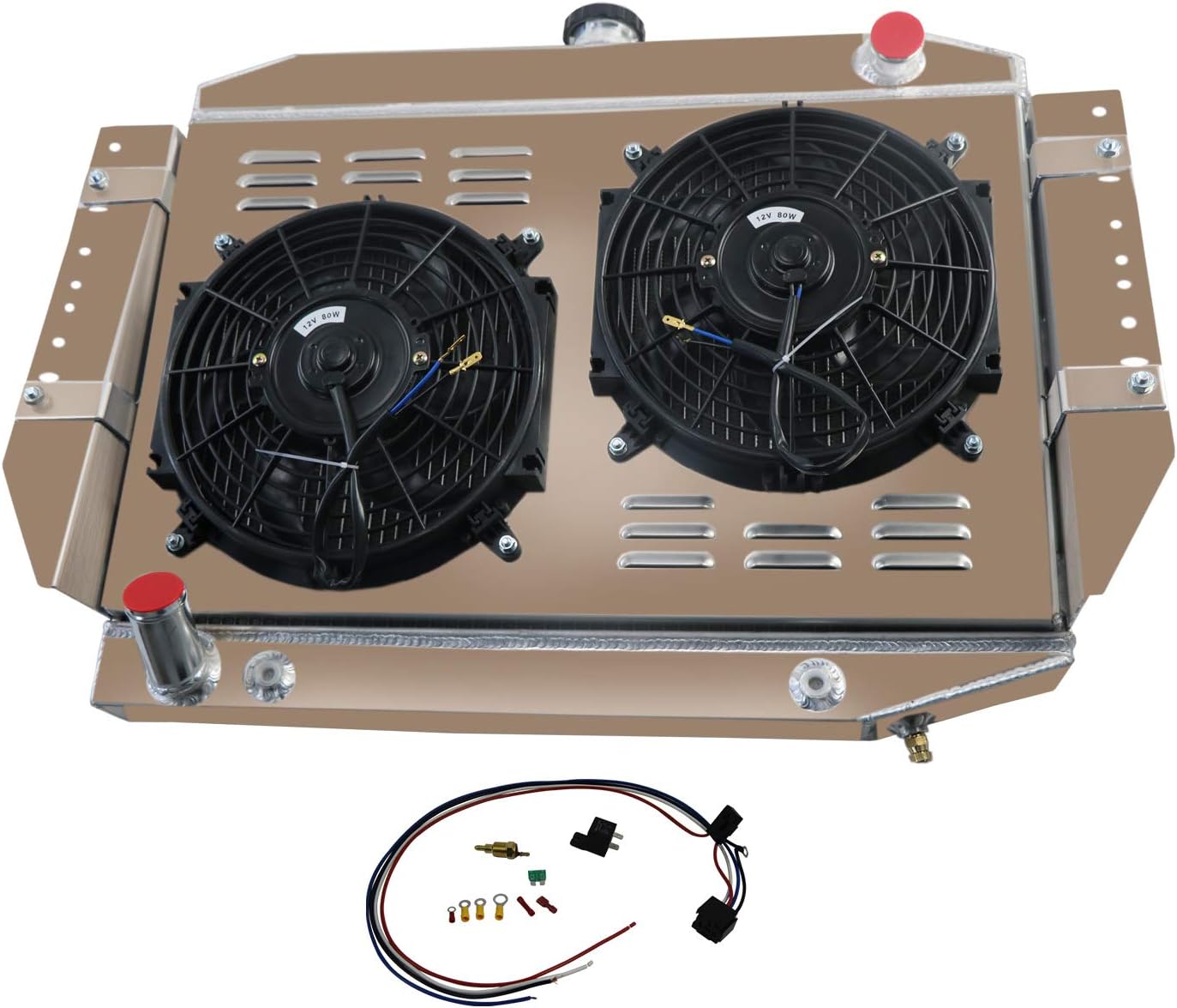 Package Include1 X 3-Row Aluminum Radiator (Includes Radiator Cap)1 X Aluminum Shroud2 X 12" Fans (Includes mounting kits)1 X Thermostat Relay KitVehicle FitmentFor 1974-1979 Jeep CherokeeFor 1974-1978 Jeep J10 J20For 1972 Jeep J-100For 1972-1973 Jeep J-2500 J-2600 J-4500 J-4600 J-4700 J-4800For 1972-1979 Jeep WagoneerFits 5.9L/6.6L V8 models onlyRADIATOR SIZEHigh Performance Racing Spec.4-Row of tubes Core Racing DesignMaterial: High Quality Full T-5057 Aluminum ConstructionCore Dimensions (H x W): 15 7/8'' x 26'' x 2.5'' in.Overall Dimensions (H x W): 22 1/8'' x 30 5/8''Hose Locations: IN: Passenger / OUT: DriverHose Fittings: IN: 1 1/2'' - OUT: 1 1/2''Trans Cooler Details: 1/8-27NPTMounting Type: BRACKET MOUNTOEM Style Brass Petcock DrainCNC machined filler neck and capAircraft 5057 grade aluminum and with raw aluminum finish