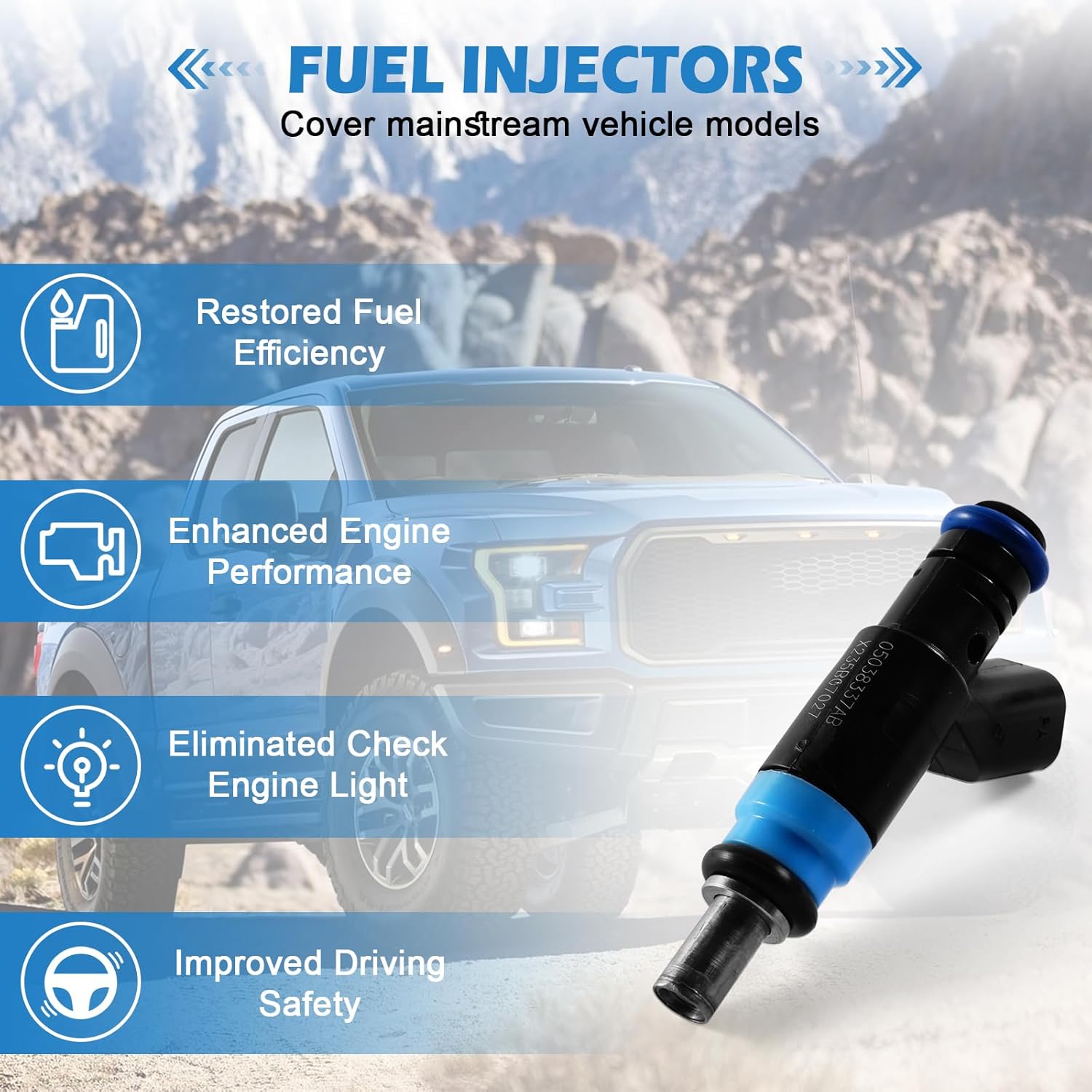 16-Hole Laser-Drilled Fuel Injectors for Dodge/Jeep 6.4L V8 (2012-2021) - OE# 05038337AB | High-Performance Fuel DeliveryProduct Features:● Each 16-hole laser-drilled fuel injector is precision-engineered to OE specifications, designed to deliver 22% better fuel distribution than stock 12-hole injectors—boosting combustion efficiency, power, and throttle response in Dodge/Jeep 6.4L V8 engines.● Engineered with integrated 50μm microfilters, these injectors feature a self-cleaning design that prevents clogging and maintains 98% flow efficiency even after 100k miles—reducing maintenance headaches and ensuring consistent performance.● Crafted with high-grade materials and optimized spray patterns (25° hollow cone), these injectors minimize fuel waste, lower emissions, and enhance fuel atomization for smoother idle, faster acceleration, and improved fuel economy.OE Replace Part Number:● 05038337ABCompatible Models :● For Dodge Charger (2012-2021) 6.4L V8● For Dodge Challenger (2011-2021) 6.4L V8● For Dodge Durango (2018-2021) 6.4L V8● For Jeep Grand Cherokee (2012-2021) 6.4L V8Package Including:● 8x High-Performance Fuel Injectors● Lifetime Technical Support● 90-Day WarrantyAttention:● Professional installation is strongly recommended to ensure proper alignment with your vehicle’s fuel rail and engine management system—incorrect installation may cause leaks, reduced power, or check engine lights.● Inspect injectors for visible damage, debris, or corrosion before installation; minor imperfections can impact fuel flow and performance.● Use a fuel injector puller tool (sold separately) for damage-free removal of old injectors—avoid prying or bending to preserve component integrity.