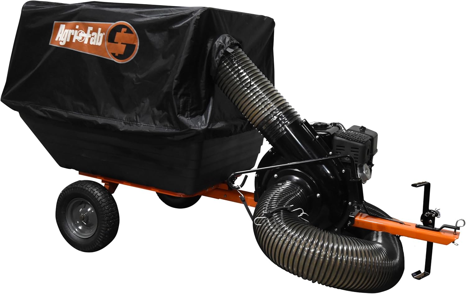 Agri-Fab Inc., 45-0630 Soft Top Mow-N-Vac with its powerful 208cc LCT engine that create suction up to 80 MPH, it comes with cart, vacuum and tractor deck adapter to take care of those medium to large jobs. It is designed to fit more than 40 different cutting decks up to 54 inches wide, this unit features a thick vinyl top with vented back design to reduce dust and has a 29-cu. ft capacity. It also has a 126” x 6” hose which makes this Soft-Top Mow-N-Vac ideal for zero turn lawn mowers. Lastly it has an easy lift handled to assist attaching to the universal hitch on your lawn tractor. This product comes with a 3-year limited warranty.