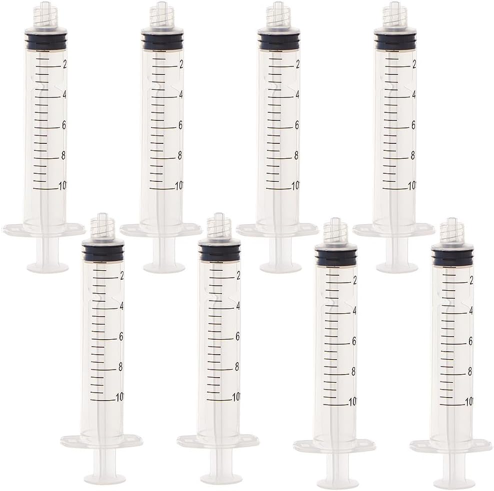 Included in the pack: this pack contains 8 syringes. Filling up to 10 ml. Size: 10 cm.