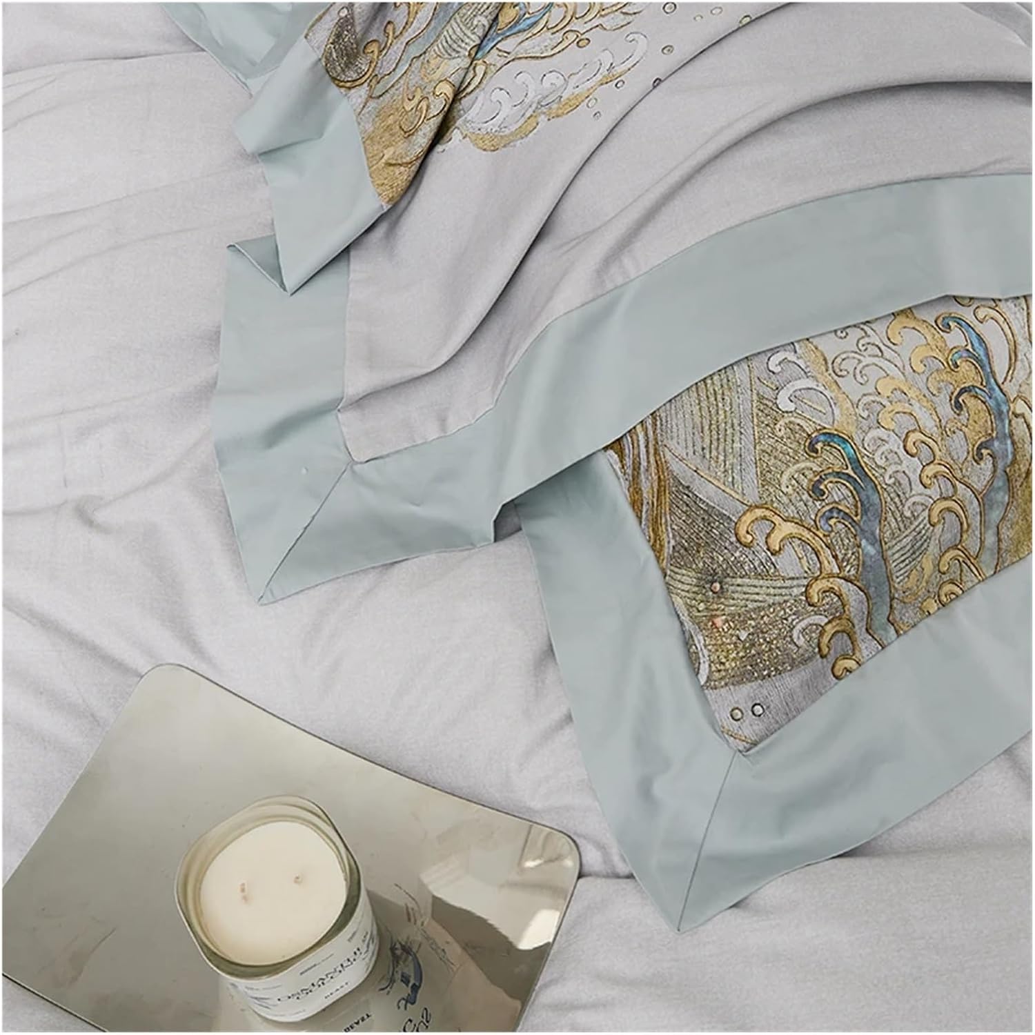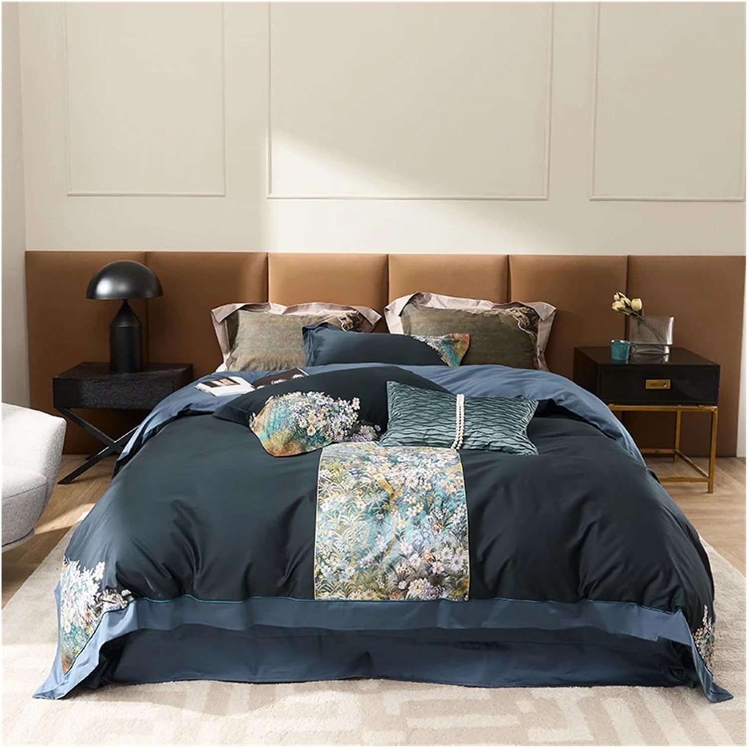 Queen size 200X230cm 4pcs1 pcs duvet cover:200*230cm (78.7*90.6 inch );1 pcs flat bed sheet:245*250cm (96.5*98.4 inch);2 pcs pillowcase:48*74cm (18.9*29.1 inch);King size 220X240cm 4pcs1 piece Duvet Cover: 220*240cm(87*94inches)1 piece Bedsheet:245*270(96*106inches)2 pieces Pillowcases:48*74cm(19*30inches)