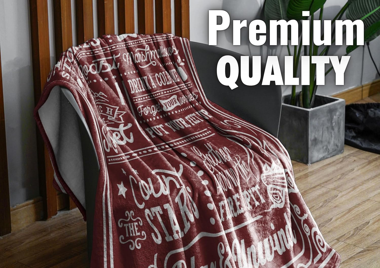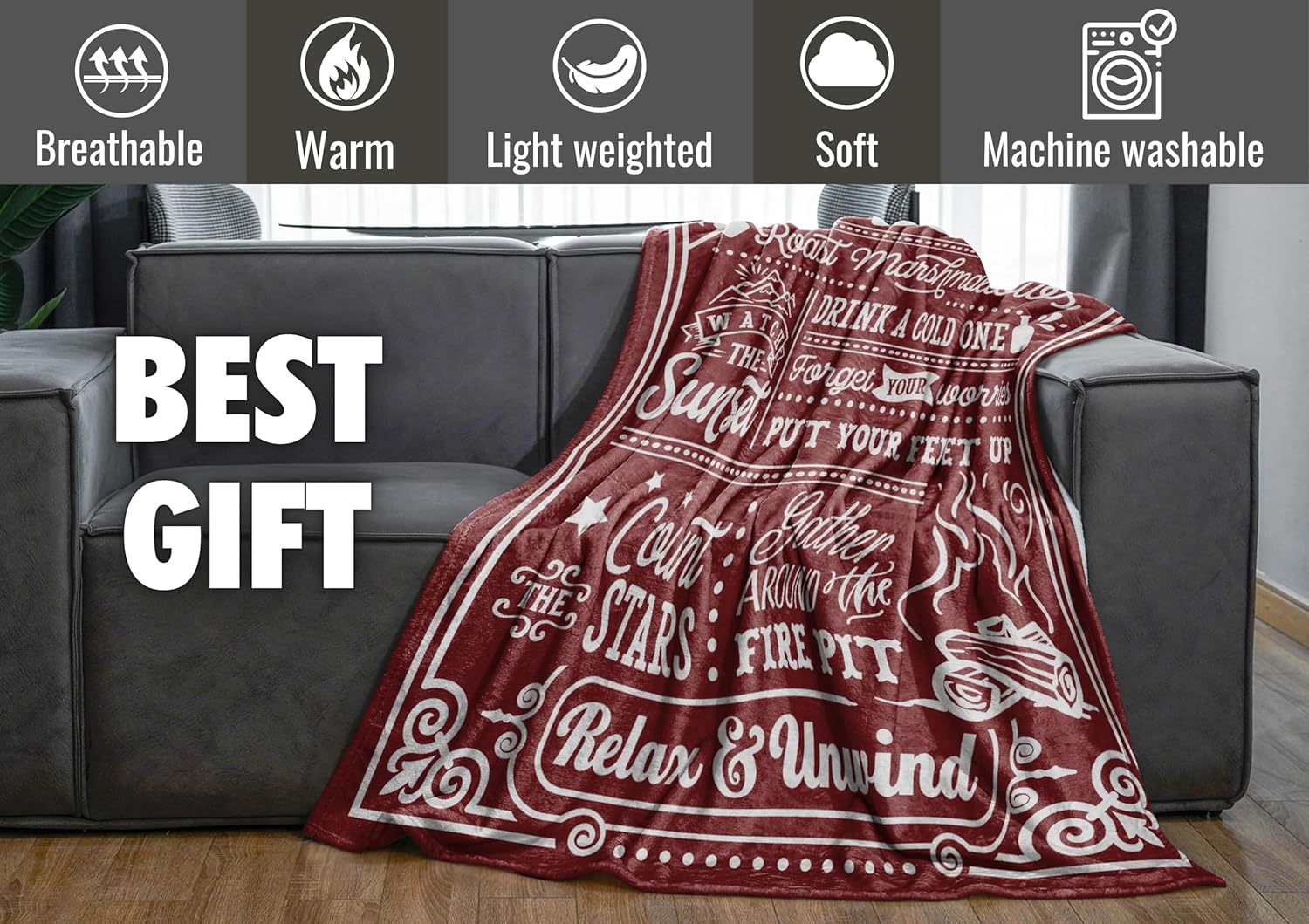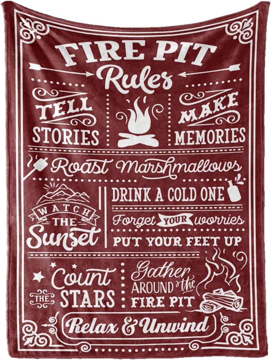 Camping Gifts for Women Men Lovers Throw Blanket, Happy Campers Decor Outdoor, RV Campsite Travel Hiking - Fire Pit, 60" x 80"
