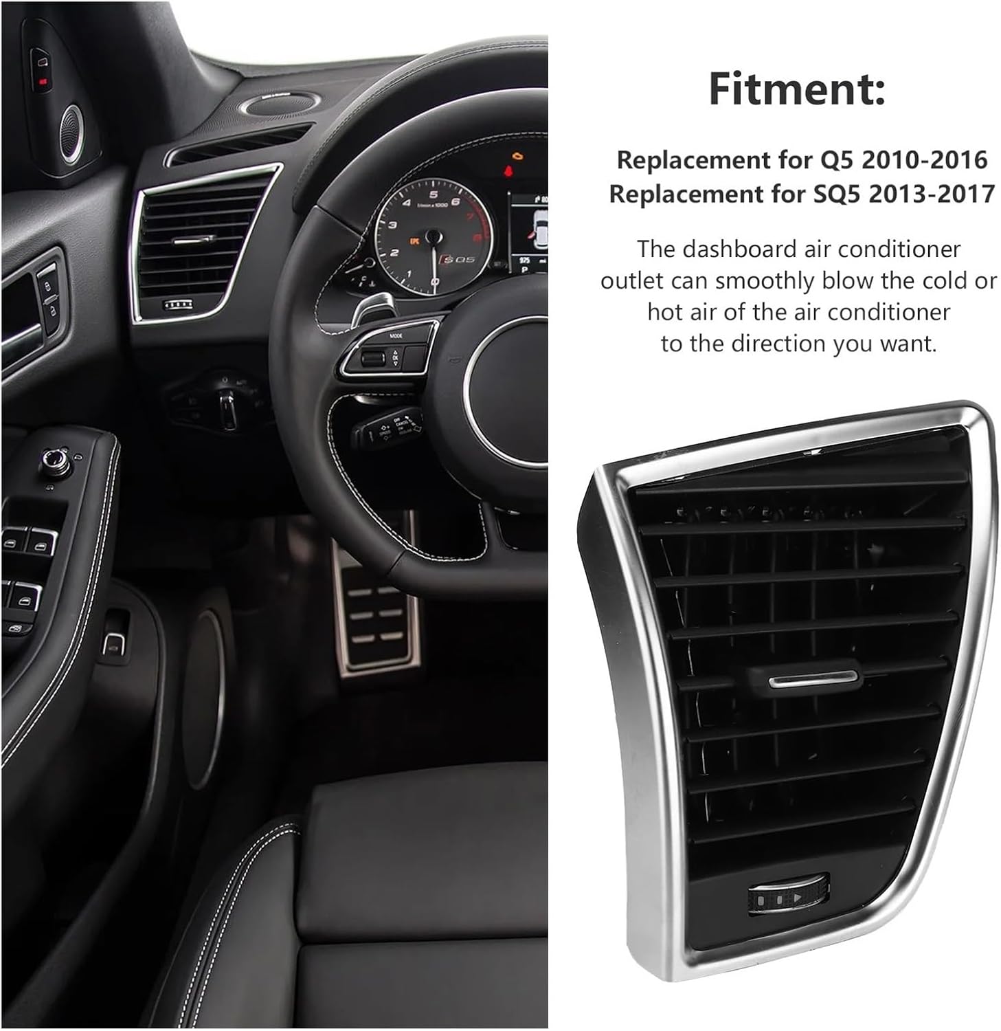 Specification:Item Type: Dashboard Air VentMaterial: ABSProduct OE: Left: 8R1820901, Right: 8R1820902Fitment:Replacement for Q5 2010-2016 Replacement for SQ5 2013-2017Package List:1 xDashboard Air VenteModel Name : Car Front Air Conditioning VentItem Type : Air-conditioning InstallationItem Type : Dashboard Air VentMaterial : ABSProduct OE Left : 8R1820901Product OE Right : 8R1820902Dear friend,hello! Welcome to shop! We are glad to serve you, our store provides a variety of high-quality products for you to choose, if you have any questions, please feel free to contact us, we will serve you wholeheartedly, look forward to working with you! I wish you happy every day!