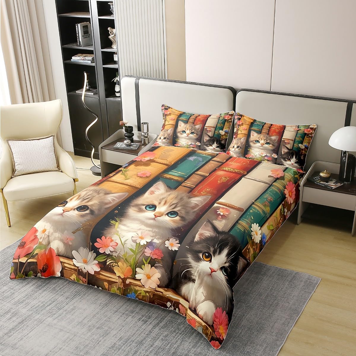 Package Include: Duvet Cover and Pillowcase, no comforter or sheet Quality duvet cover set pattern bedding set, simply decorating your rooms any time you want, bringing you fresh feel for year round use Material: Made from 100% Cotton Size Information: Twin size 2pcs duvet cover set: 1 Duvet Cover 68" x 90" 173 x 229cm, 1 pillowcase 20" x 30" 51x75cm Full size 3pcs duvet cover set: 1 Duvet Cover 80" x 90" 200 x 229cm, 2 pillowcase 20" x 30" 51 x 75cm Queen size 3pcs duvet cover set: 1 Duvet Cover 90" x 90" 229 x 229cm, 2 pillowcase 20" x 30" 51 x 75cm King size 3pcs duvet cover set: 1 Duvet Cover 104" x 90" 264 x 229cm, 2 pillowcase 20" x 36" 51 x 92cm Personalize your bedroom: Beautiful design and colorful print, making your bedroom unique and bringing you a wonderful dream Washing instructions: Machine wash separately in cold water, hang dry, do not bleach Occasion: The cute soft duvet cover bedding sets designed for children, adults, men, women, teens. This duvet cover set is also suitable for all seasons, spring, summer, autumn and winter. Warm Tips: There may be some slight differences between the color tone of the pictures and that of the actual items due to lighting effects, monitor's brightness, etc.