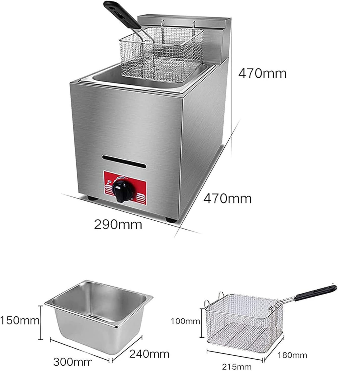 Properties: 1. Single fryer, 6 liters, made entirely of stainless steel, with frying basket and lid. 2. It can be used in home cooking or commercial purposes, such as restaurants, supermarkets, fast food restaurants, snack bars, etc. Specification: Product Name: Gas Fryer Silver. Heating: gas. Capacity: 6L. Roasting basket size: 21.5 x 18 x 10 cm. Product Size: 47*29*47cm Package contents: 1 x stainless steel fryer Remarks: 1. Due to the light and screen difference, the item's color may be slightly different from the pictures.