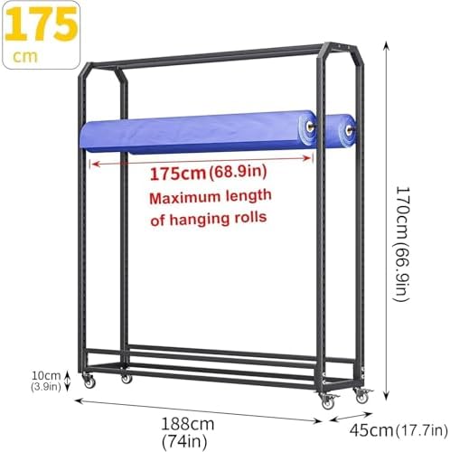 It designed specifically for organizing and storing vinyl wrap and fabric rolls with utmost convenience, providing you with an efficient organization and storage system.Heavy-duty storage rack system designed for organizing and storing vinyl films and fabric rolls. This versatile rack is also a great solution for organizing your belongings, providing you with an efficient organization and storage system. Experience the convenience and efficiency of our heavy-duty wall-mounted storage rack system. Organize your vinyl packaging, fabric rolls, and crafting accessories to easily create a neat and productive workspace.Specifications:Product Name: Vinyl Cart Mobile Rack/Fabric Cart/Scarves Rack/Whether to assemble: yesFurniture structure: bracket structureProduct Features:Snap-on design, the spacing can be adjustedEasy to assembleEasy to cleanThe circular multi-bar display stand with a smooth metal surface is very suitable for shopping malls, supermarkets, warehouses, garages, car beauty shops,Package Includes: Fabric Cart x 1Warm notes:Product size pure manual measurement, the error in 1-2cm, the specific subject to prevail.It's can't avoidable that you will receive the backpack with some smells from original material as it's brand new. The smell will be gone if place the backpack in freely circulating air for 2-5 days.100% After Sales Service: If the product is broken or the handle is missing, don't hesitate to contact me by email immediately and I will re-deliver it immediately for free