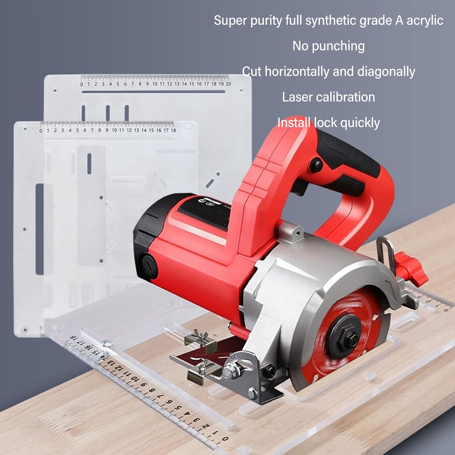 1. CLEAR AND ADJUSTABLE: This 8mm thickened acrylic base plate is clearly visible when cutting, wear , and highly transparent acrylic base plate allow you to dynamically observe whether the plate has a skip when cutting, can be adjusted in time to avoid damaging the plate 2. STRONG AND STABLE: Stainless steel fasteners are not easy to deform, compared with traditional baseplate iron accessories, with higher hardness, not easy to deform due to machine tension, more robust. Stable and secure after locking 3. WEAR : The router table insert plate is printed with high hardness and friction ink, which is not easy to produce scratches and protect the surface of the product. The perforation design is suitable for large and small trimming machines 4. CUTTING ANGLE: Suitable for 4in cutters, this wood milling flip board is capable of 45in bevel cuts and 90in flat cuts and is dual purpose, can be used as a portable mini sawing machine or can be flipped over to be used as a mini saw table 5. ACCURATE AND RELIABLE: The woodworking flip plate has adjustable backload, adjustable width from 0 to 18cm, and possess accurate, stable and reliable clamping position Spec: Item Type: Router Table Insert Plate Material: Acrylic packing list: 1 x Cutting Machine Bottom Plate 1 x Backing Strip 4 x Fixed Iron Buckle 4 x Fixed Iron Buckle Gasket 4 x Fixing Fastener Fitting Screw 6 x Screw 6 x Wing Nut 6 x Gasket 1 x Dust Cover 1 x Dust Cover Base 1 x Dust Outlet 1 x Orange Backing Strip 2 x Hand Screw 6 x Screw 1 x Nut