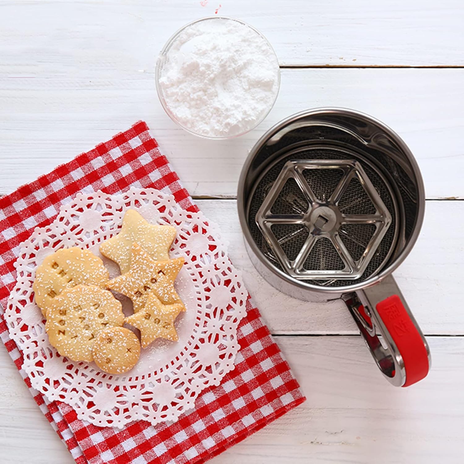 Made by Stainless Steel Flour Shaker Material with Anti Rusted Design for this Flour Sifter Flour is also used in the making of bread, cakes and cookies. The sifter for baking to remove other impurities in the flour. Flour sifter, let you enjoy the delicious at the same time, feel the fun of baking. Specification: Product Name: Flour Sieve Material: Stainless steel Color: silver + red Size: 10 11cm (4 4.3 inch) Package Included: 1 Flour Sifter