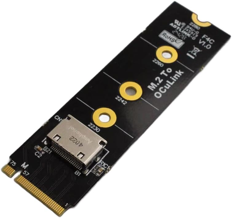 JMT ADT-F9G F4C F4Q OcuLink SFF-8612 to M.2 NVMe / PCIe X16 Extension Card PCIe4.0 64Gbps External Graphics Card Adapter Product Detail: Product Model: F9G , F4C, F4Q Product Name: OcuLink SFF-8612 to M.2 NVMe / PCIe X16 Extension Card Bandwidth speed: F4C and F9G PCIe 4.0 x4, 64Gbps. F4Q Pcie5.0 X4 128Gbps. Product use: for graphics card external or other PCIe devices Product Description: Oculink is an interface that is adapted from the NVME SSD slot on the motherboard of the computer, NVME takes the pure PCIe channel, so the Oculink external graphics docking station also takes the PCIe channel, which has a small performance loss. Compared to traditional Thunder bolt-compatible adapter solutions, Oculink's effective bandwidth can reach 64Gbps under PCIe 4.0 x4, far exceeding Thunder bolt-compatible solutions. Friendly reminder: OcuLink does not support hot-swap Power supply: Support standard ATX 500W power supply, power supply needs to be prepared by the buyer. Purchasing tips: Be sure to buy 1~2 samples to test and verify that there is no error before purchasing large quantities. The switch on the F9G: Switch toggle to 1 is auto-start, you can follow the startup; toggle to 2 is forced startup, directly powering the graphics card docking station, which is risky, toggle to 1 auto-start can be enough. D1 light represents cable detection, some cables will cause the D1 light does not light. D2 light represents the power supply status of the docking station, light means that the docking station is in the startup state. D3 light may not light up when using some AMD-compatible graphics cards. D4 light is off under normal conditions, only in the opening and closing will blink a little.
