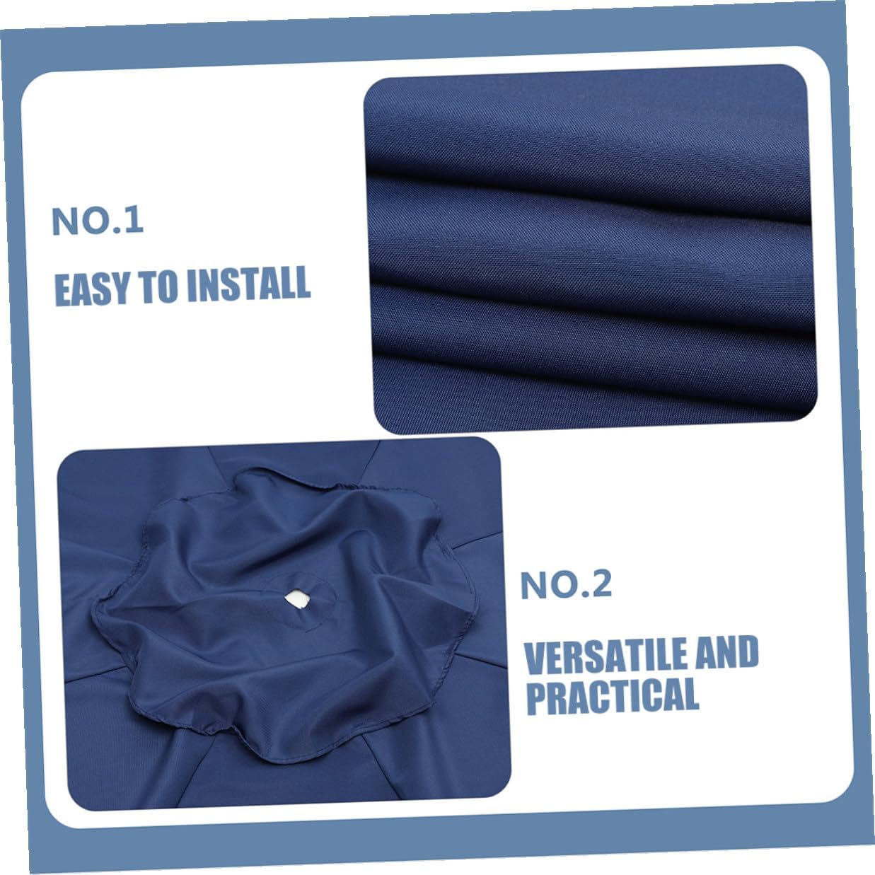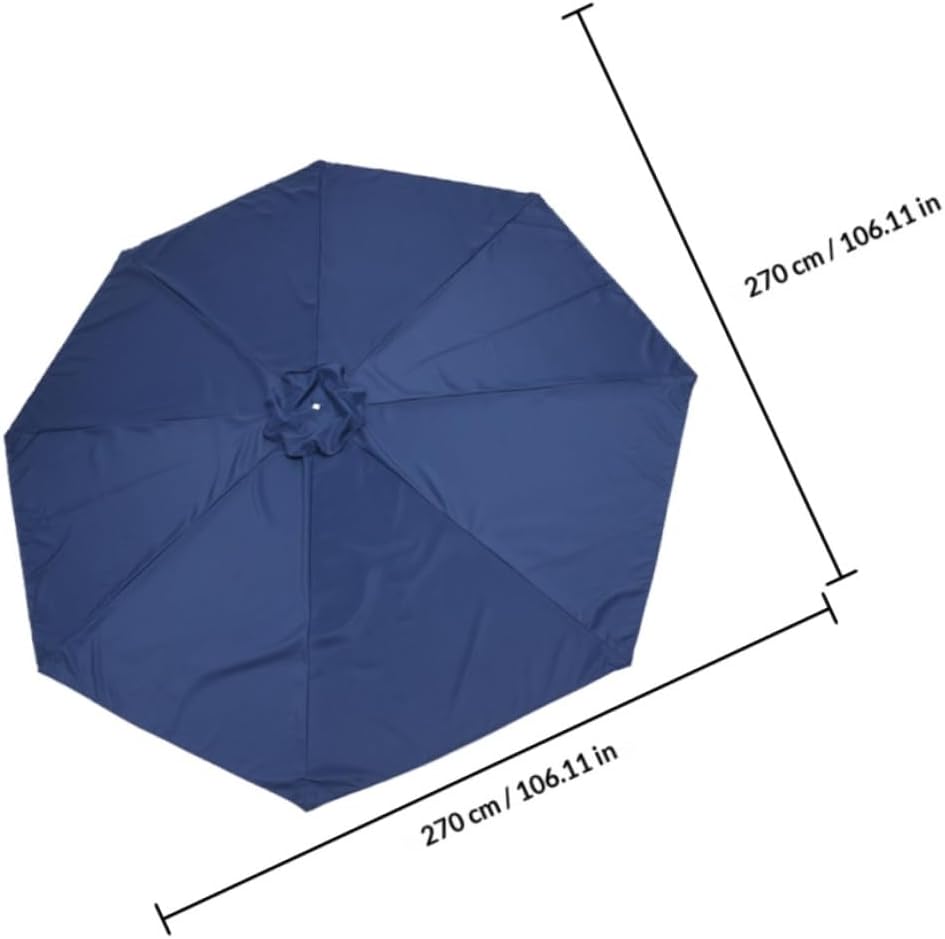 Package Include 1 x outdoor umbrella canopy Characteristics -Material:Woven polyester -Selected Material: This replacement canopy is crafted from selected material, ensuring it withstands the elements for years. -Safe: This canopy shields you from UV rays, making your party time safer parasol replacement top cloth. -Vented Design: The canopy features a vented design for optimal airflow and heat dissipation. replacement umbrella -Color:Dark Blue -Product Info:Parasol cloth -Reinforced: stress points at the rib-to-canopy connections provide extra durability, ensuring umbrellas. -Size:270.00X270.00X0.10cm/106.11X106.11X0.04in -Note:suitable for 8-rib umbrella with 52-54 inch(132-135cm) rib length. umbrella cloth replacement -Keep Stable The ventilation feature allows for proper airflow, reducing heat buildup and enhancing the umbrella's stability outdoor patio umbrella.Goods Descriptionoutdoor umbrella replacement Please note, this product includes only the canopy, not the frame or ribs.outdoor umbrellas for patio The canopy features a vented design for optimal airflow and heat dissipation.outdoor umbrella replacement canopy Upgrade your outdoor space with our patio umbrella replacement canopy.patio umbrellas Crafted from selected material, blocking UV rays
