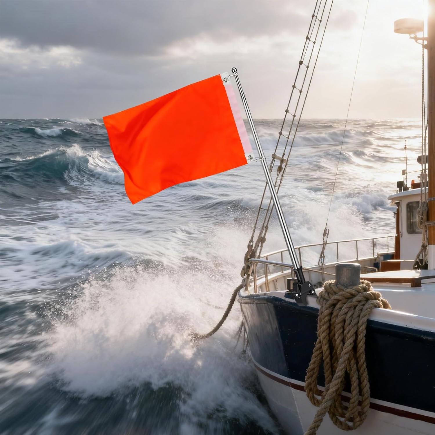 Flagolden Orange ATV UTV Flags with Pole, Small Safety Flag 12x18 inch for Boat with 53'' Adjustable Retractable Flagpole Kit