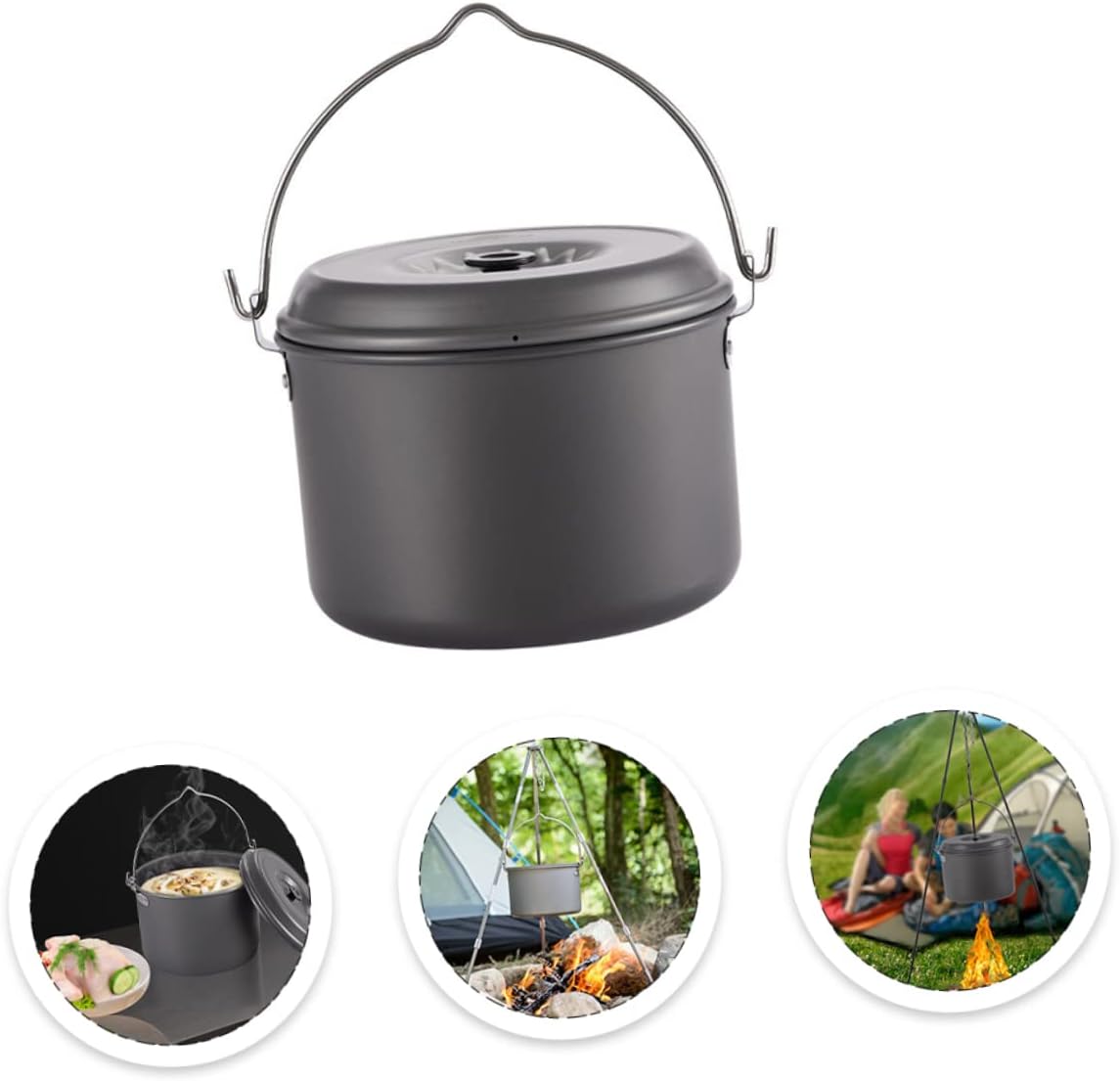Package List 1 x Pot Features - Material: camping cooking essentials. - Size: Approx. 21.00X21.00X13.50cm/8.25X8.25X5.31in camp cookware. - Color: Assorted Color camping kitchen essentials. - Capacity: 4L camp pots pans. - The groove design of the handle is more conducive to maintaining balance when cooking is hanging camp cooking kit. - With good thermal conductivity, food can be heated faster, and delicious food can be enjoyed in a short time camping equipment. - hard aluminum oxide material, strong and durable, and scratch backpacking utensils. - The pan ears are fixed with rivets, which are very firm and can be used for a long time backpacking cookware. - This camping pot is designed for 4-6 people, suitable for camping, hiking, backpacking, picnics, etc hiking camping cookware.Goods Descriptioncamping equipment With it, you can enjoy camping cooking time with your family.camping pans for cooking want to have a portable camping pot? Then, our camping pot with handle is your .small camping pot Using hard material, it has good thermal conductivity