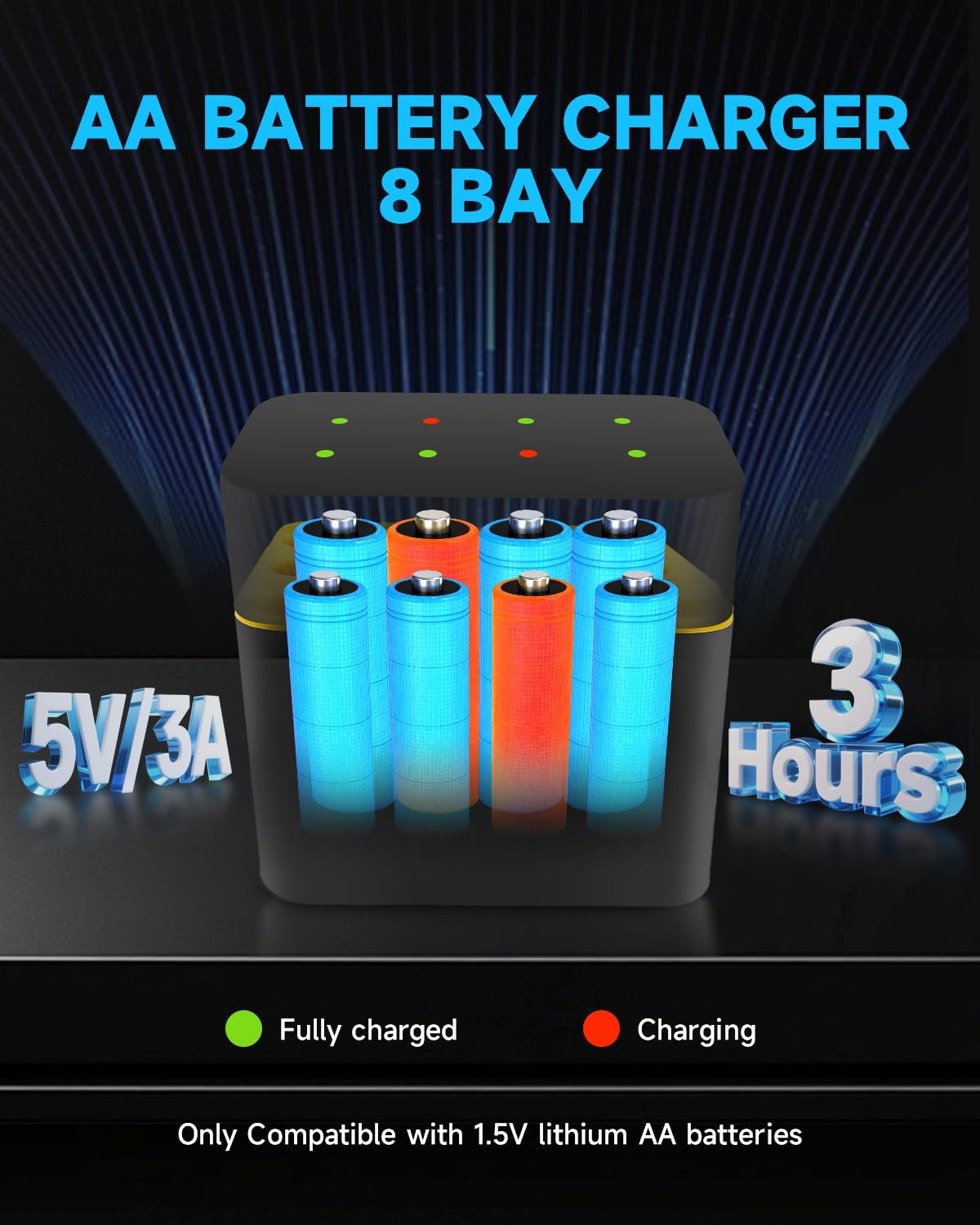 | BuiltIn Media | 8 pack rechargeable lithium aa batteries, 8 solts battery charger box(for aa lithium battery) |