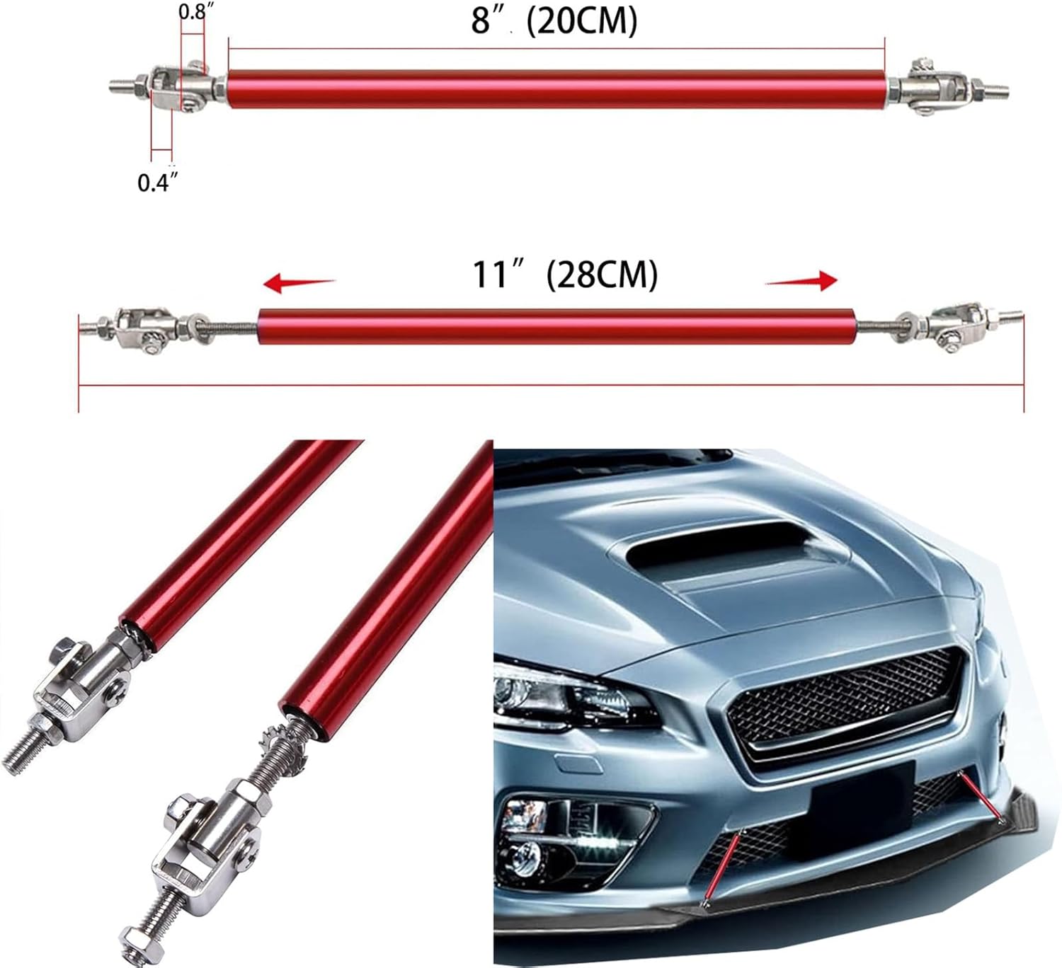 Package Included: 1set Front Lip Chin Bumper Body Kits ( 4pc together) with screw and 2Pcs Adjustable Front Splitter Rod Specification: -Type:Front Lip Chin Bumper Body Kits -Material:ABS -Color:Black -Weight:1Kg around -Placement on Vehicle:Front;;Lower -Fitment Type:Performance/Custom Feature: -Direct Fit. -Easy install and durable use. -Great quality and great Fitment. -Correct Connector No cutting or splicing. -Strict quality control standards to Build and test. -It'll give you a sporty look without making it too aggressive. -Light in weight and enduring, different optical line comes from different points of view. *Instruction Not Included, Professional Installation Is Highly Recommended.* Universal Fit for Popular Models Strut Rod Tie Support Bars Included**: Reinforced mounting system ensures rock-solid stability at highway speeds.