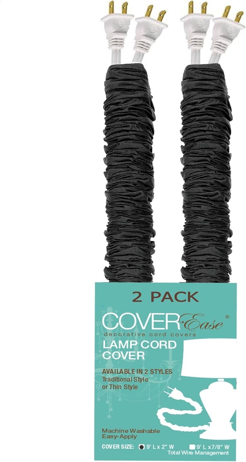 Our beautiful silk like lamp cord covers made of a quality faux dupioni fabric. **9 ft long x 2 in wide**. Easy to apply with patented tube application. The cover slides on over the plug of an electrical cord by inserting the plug into the tube and sliding the cover off onto the electrical cord Just insert plug into tube & slide cover onto cord! Covers up to 2 cords with 1 cover. Guide: (1) cover - tight gather 2ft - 4ft, medium gather 4ft, loose gather: 5ft - 8ft. *Longer cords apply 2 or more covers & tuck ends inside proceeding cover to create seamless look Removable & Washable. **Offered in a 1 PACK or 2 PACK **