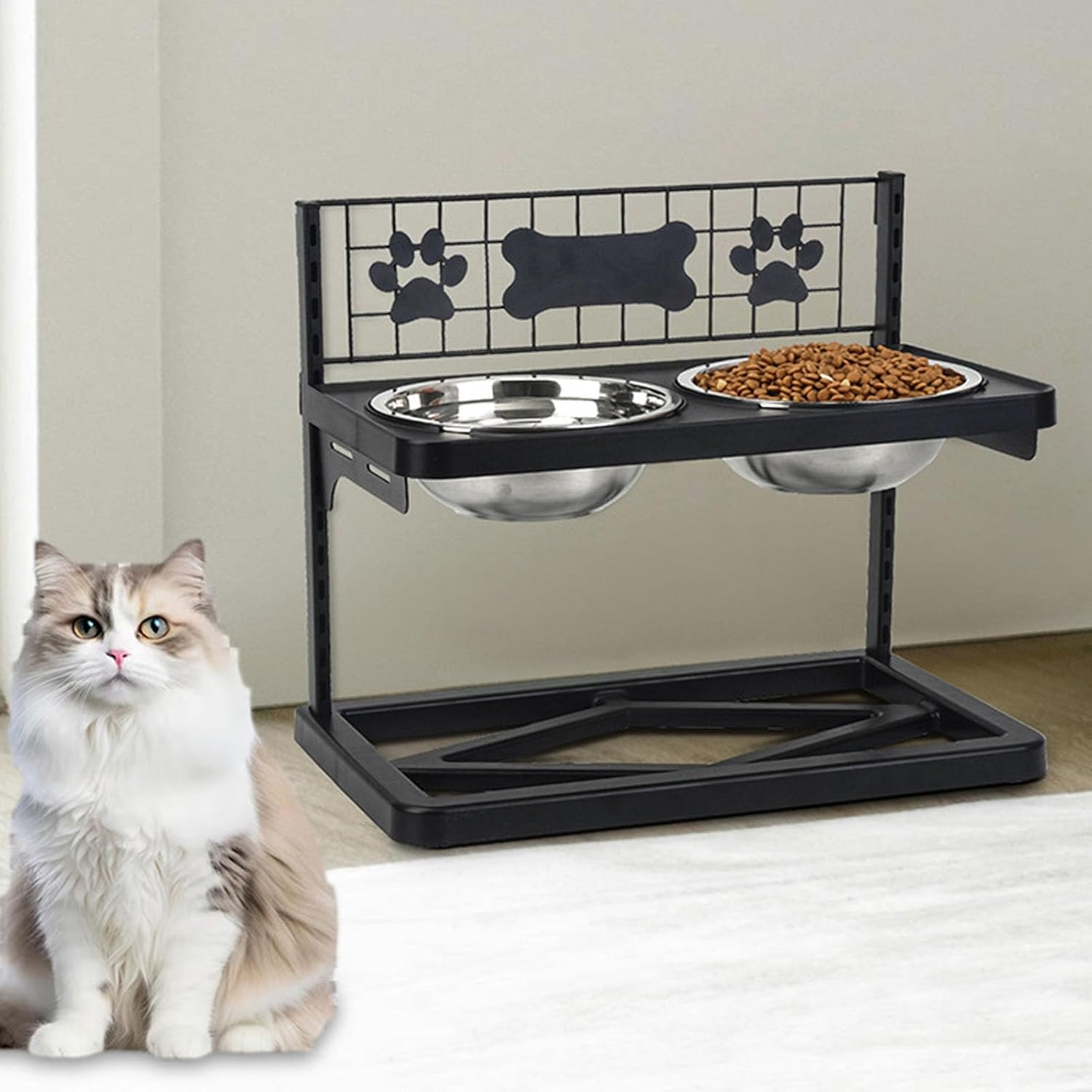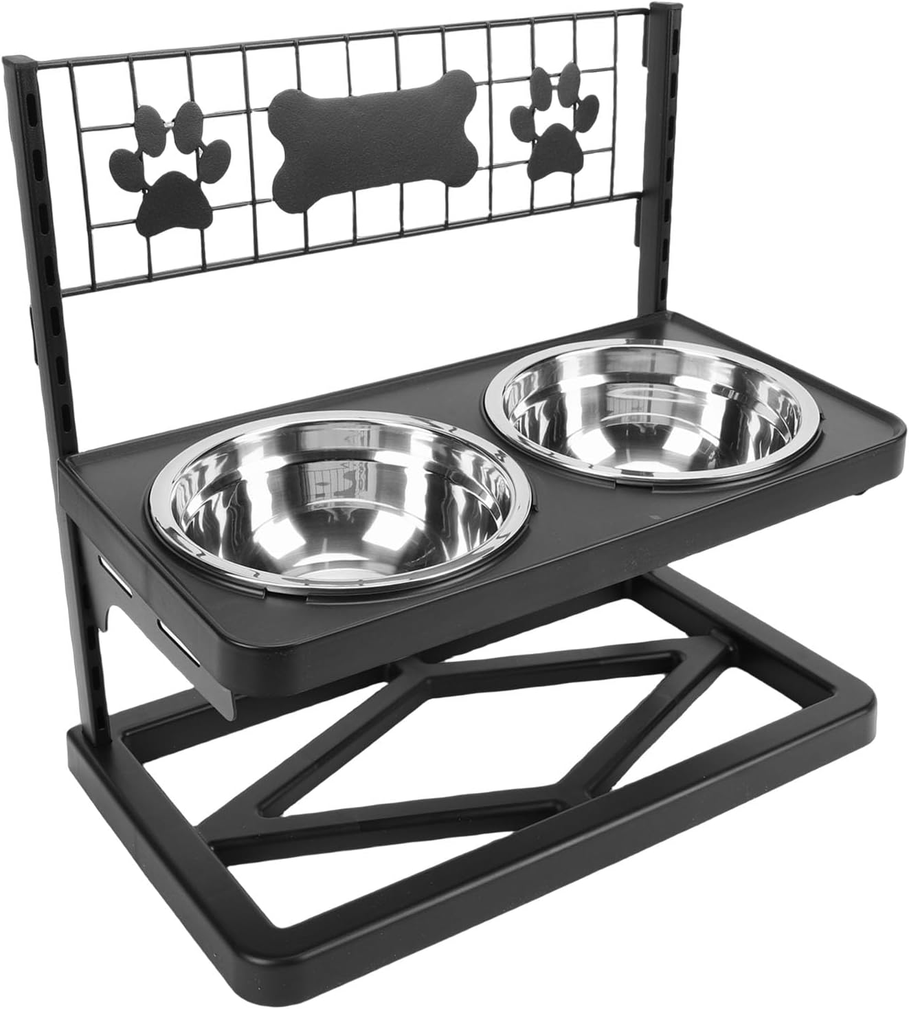 [Stable and Secure Setup] Our dog feeder stand features a secure fastening system to keep bowls steady, reducing spills and ensuring hassle-free feeding. [Spill-proof Construction] Elevated design minimizes messy spills, keeping your floors clean and making maintenance easier for pet owners. [Adjustable Height for Comfort] Customizable height settings ensure ergonomic feeding positions, reducing strain on your pet's neck and joints. [Double Stainless Steel Bowls] Includes two easy-to-clean bowls for serving both food and water, promoting a tidy and organized feeding area. [Durable and Stylish Design] Made from iron, this elevated bowl stand blends beautifully into any home decor while remaining functional for all pets. Item Type: Pet Bowl Stand Material: Stainless Steel 1 x Elevated Dog Bowls Stand (9 Components) 6 x Screws 1 x Instruction Manual